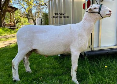 What started off as a way to increase hybred vigor into our crossbred flock, has become a new adventure into breeding Dorsets. We atrted with a Purebred ram, “Harvey” , who made us several Hampshire x Dorset market lambs. This increased the feed efficiency and growth rate in the lambs significantly. So we decided to continue the cross aspect retaining a couple DA ewes and picking up our first purebred dorset ewe in 2025.